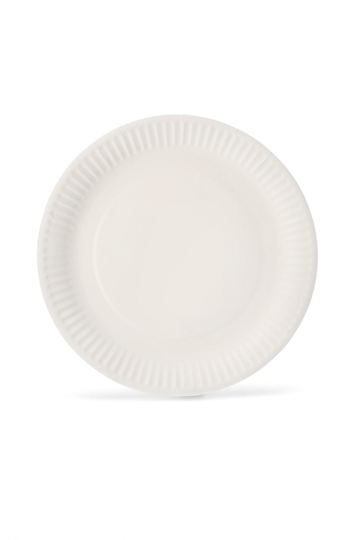 Minimalistinė baltos spalvos vienkartinė popierinė lėkštė, pritaikyta tiek šiltam, tiek šaltam įvairaus tipo maistui serviruoti.  Puikiai tinkama įvairiausioms progoms - renginiams, iškyloms, šventėms, festivaliams.